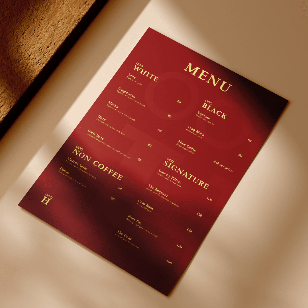 Inspired by William Shakespeare’s play, Hamlet Coffee features a crown logo symbolizing authority and offers a refined space designed for relaxation and quality coffee.
